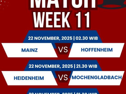 Pekan ke-11 Bundesliga 2025/2026 akan kembali menyuguhkan pertandingan-pertandingan menarik antara klub-klub besar Jerman. Kompetisi tertinggi di Jerman ini selalu menghadirkan drama, kejutan, dan aksi menegangkan…