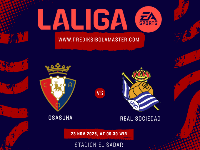 Pertandingan menarik akan tersaji pada 23 November 2025 ketika Osasuna menjamu Real Sociedad dalam lanjutan La Liga. Laga ini penting bagi kedua tim yang kini mengejar posisi aman di papan tengah sekaligus berpeluang merangsek ke zona Eropa. Melalui analisis dari prediksibolamaster, duel ini kemungkinan akan berjalan sengit dengan tensi tinggi sejak awal.