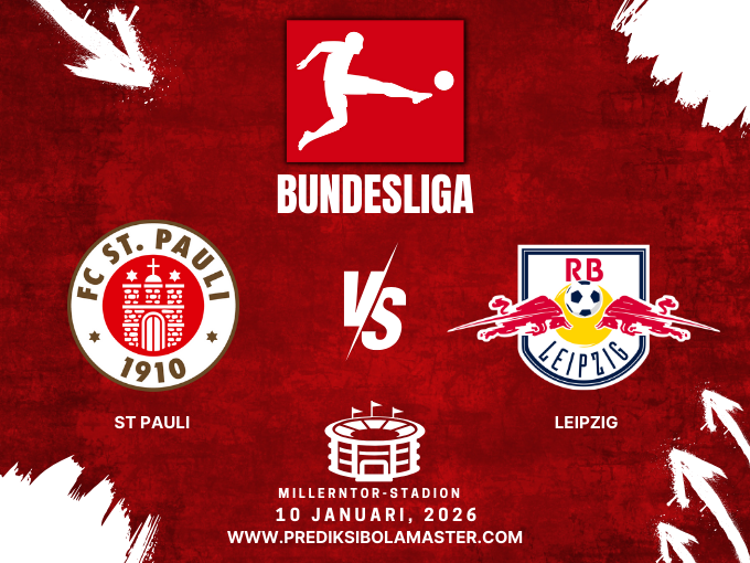 Duel antara St. Pauli vs RB Leipzig pada 10 Januari 2026 kemungkinan besar akan menjadi milik tim tamu. Leipzig membutuhkan kemenangan untuk menjaga momentum di papan atas, sementara St. Pauli harus bekerja ekstra keras jika ingin mencuri poin. Disiplin taktik di lini belakang akan menentukan seberapa lama St. Pauli bisa menahan gempuran RB Leipzig.