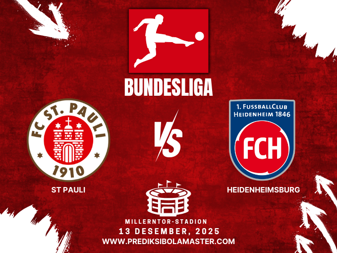 prediksibolamaster – Pertandingan sengit di papan bawah Bundesliga akan tersaji ketika FC St. Pauli menjamu 1. FC Heidenheim di Millerntor-Stadion pada Sabtu, 13 Desember 2025. Kedua tim yang sama-sama berjuang menjauhi zona degradasi ini mungkin akan menyuguhkan duel penuh tensi dan krusial. Siapakah yang akan keluar sebagai pemenang di laga Matchday 14 ini? prediksibolamaster akan mengulas tuntas.
